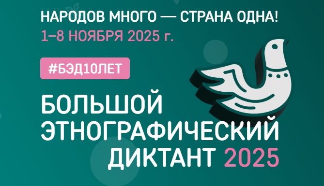 С 1 по 8 ноября 2025 г. во всех субъектах Российской Федерации и зарубежных странах пройдет Юбилейная X Всероссийская просветительская акция «Большой этнографический диктант».